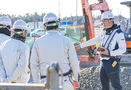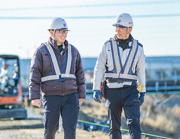 現場監督として私がこだわってきたのは、発注者や現場の近隣の方々に寄り添う姿勢です。社会インフラを支える公共工事は、「儲かればいい」「完成すればいい」という考えではその役割を担えません。また、自然が相手の仕事なので、風が強い日は重機を動かせなかったり、豪雨になれば大量の水が川に流れ、せっかく掘削した場所が水浸しになることもあります。そんな時はみんなで水を汲みだして復旧しなければなりません。本当に地道な仕事です。だからこそ工事が無事に終わって、地元の人たちの安全と生活を守ることにつながれば、言葉にできないほど大きなやりがいを感じます。