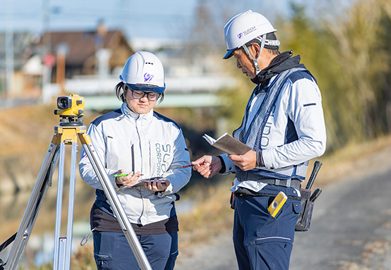 私はもともと別の建設会社で土木施工管理をしていました。前職では海上土木工事が多く、海外出張の可能性もあり、キャリアを重ねていく中で家族との時間がどんどん少なくなっていきました。全国転勤や単身赴任を繰り返している先輩たちを見て、ちょっと自分には難しそうだと感じ、地元で安心して働ける会社を探していたんです。須藤建設工業ではほとんどの現場が本社から20分圏内の距離にあり、私にとって理想的な職場でした。