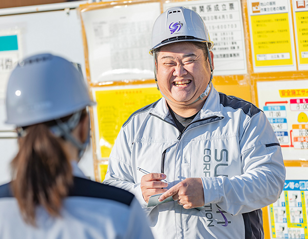 私は設備会社の電気工事士から転職しました。電柱に登ることが多く、年齢が上がるうちに体力的な負担が大きくなっていたのが理由です。須藤建設工業に勤めている同級生に相談すると、「うちに来たら?」と誘ってもらい、社長と面談して入社を決めました。社長の印象はとても穏やかで話しやすい方で、将来のキャリアパスや家族のこと、趣味までいろんな話を聞いてもらいました。今では結婚して家も購入できたので須藤建設工業を選んで本当によかったと思っています。
